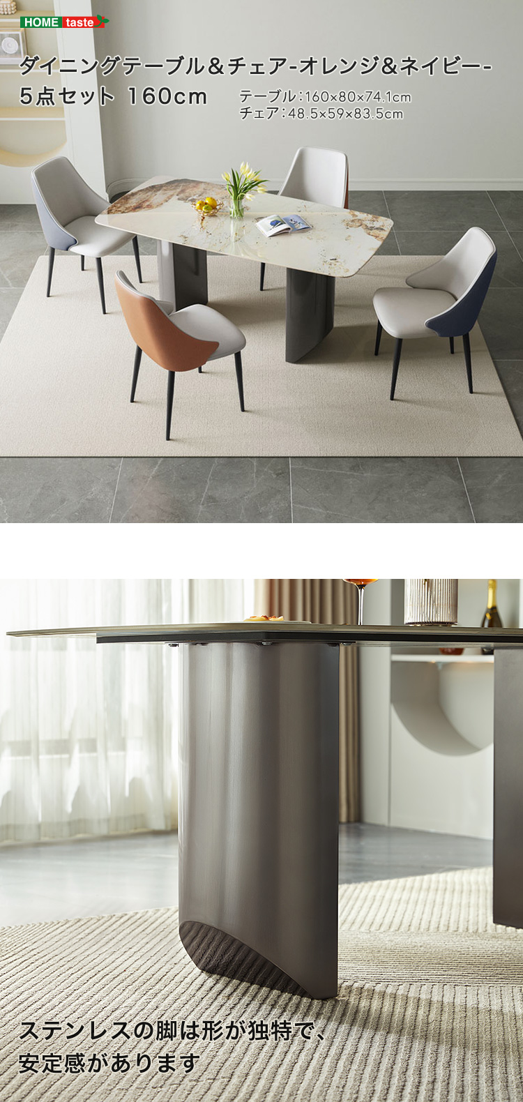 ダイニングセット 高級天板 スチール脚 4点セット 耐熱性