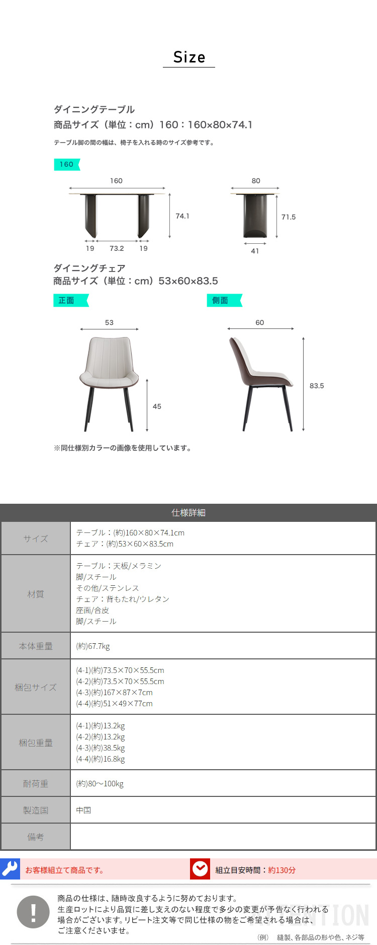 ダイニングセット 高級天板 スチール脚 5点セット 耐熱性