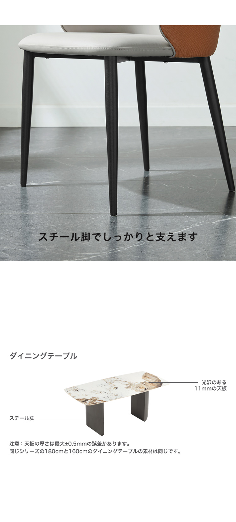 光沢天板 ダイニングテーブル 180cm スチール脚