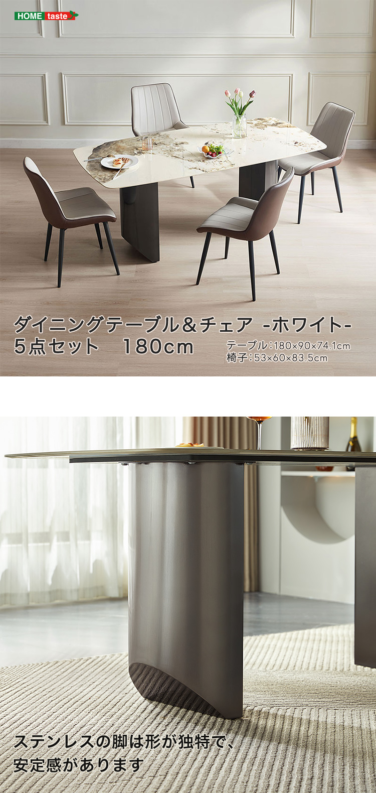 光沢天板ダイニングテーブル&チェア-ホワイト- 5点セット 180cm
