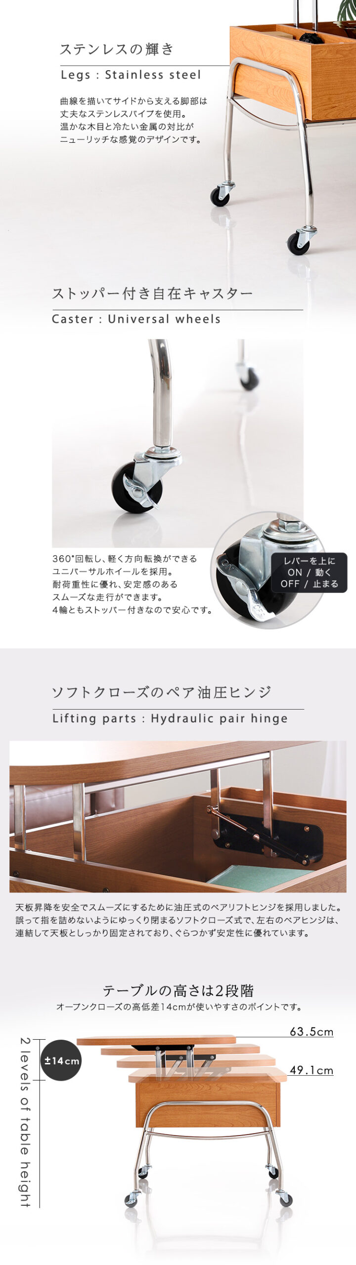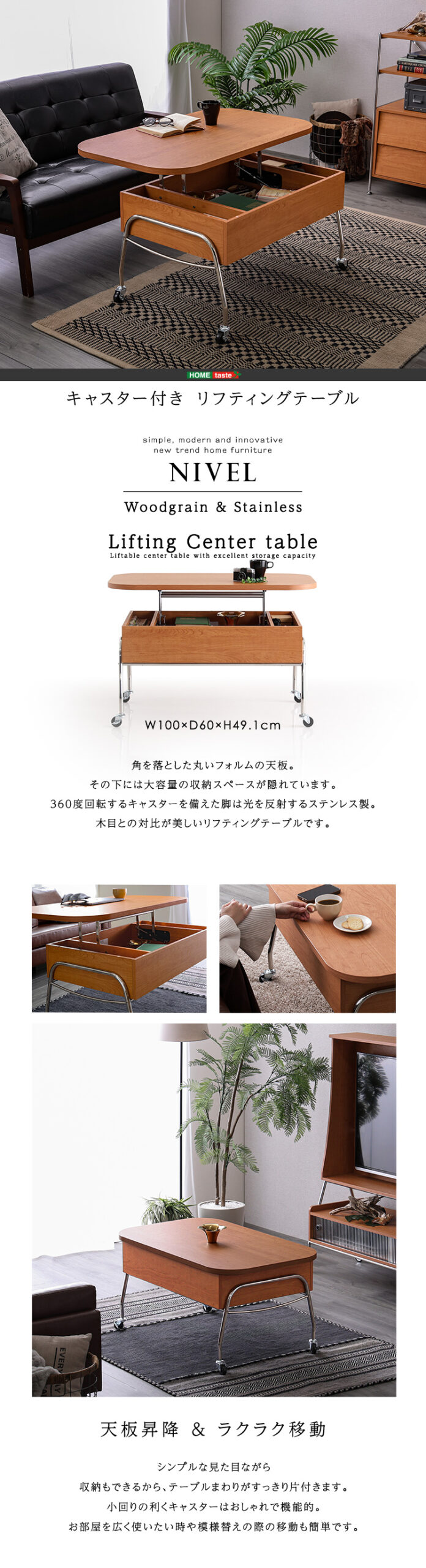 キャスター付き リフティングセンターテーブル 【NIVEL-ナイベル-】