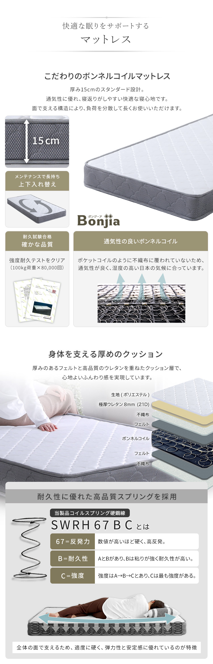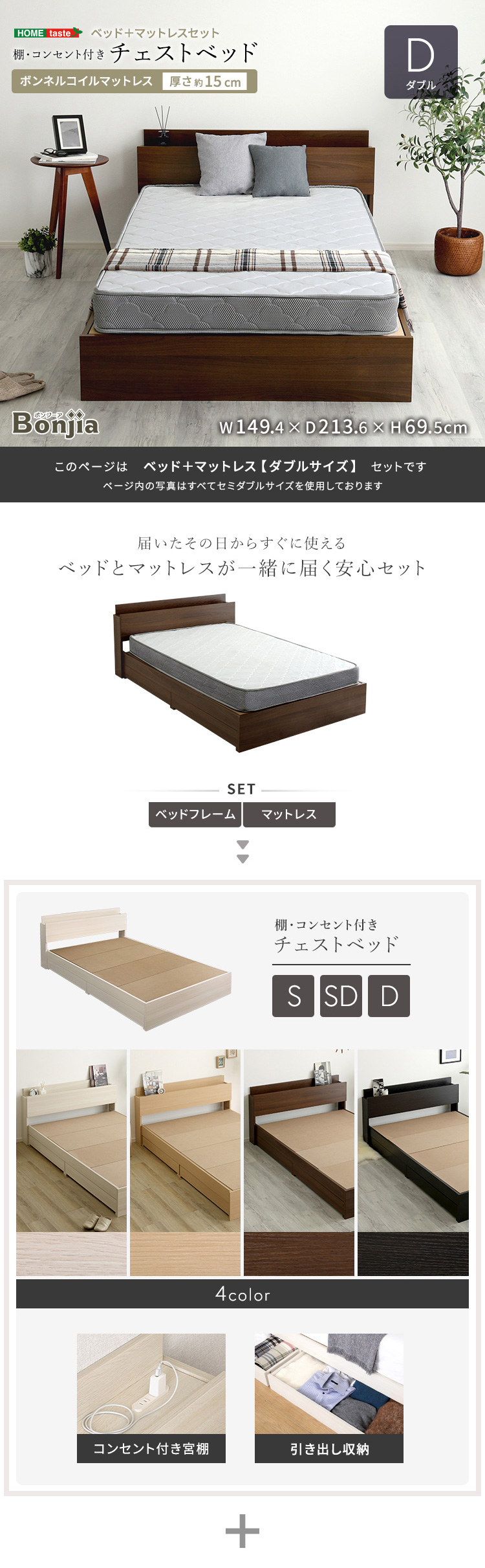 ベッド マットレス付 ボンネルコイル ベッドフレーム