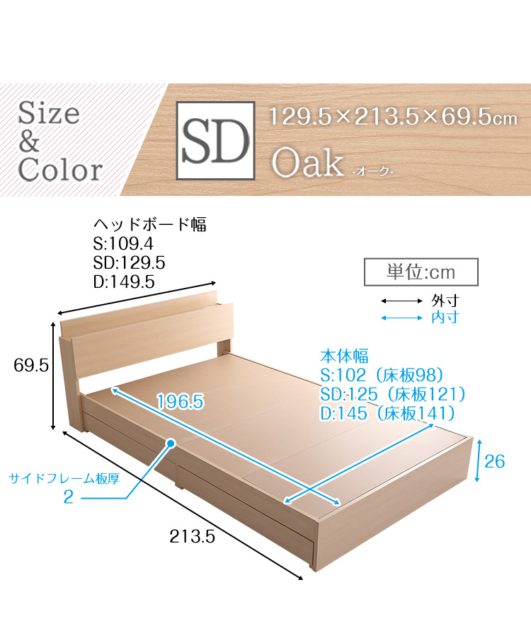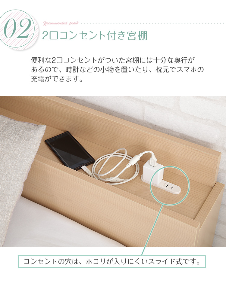 インテリア 家具 フロアベッド コンセント付き セミダブル