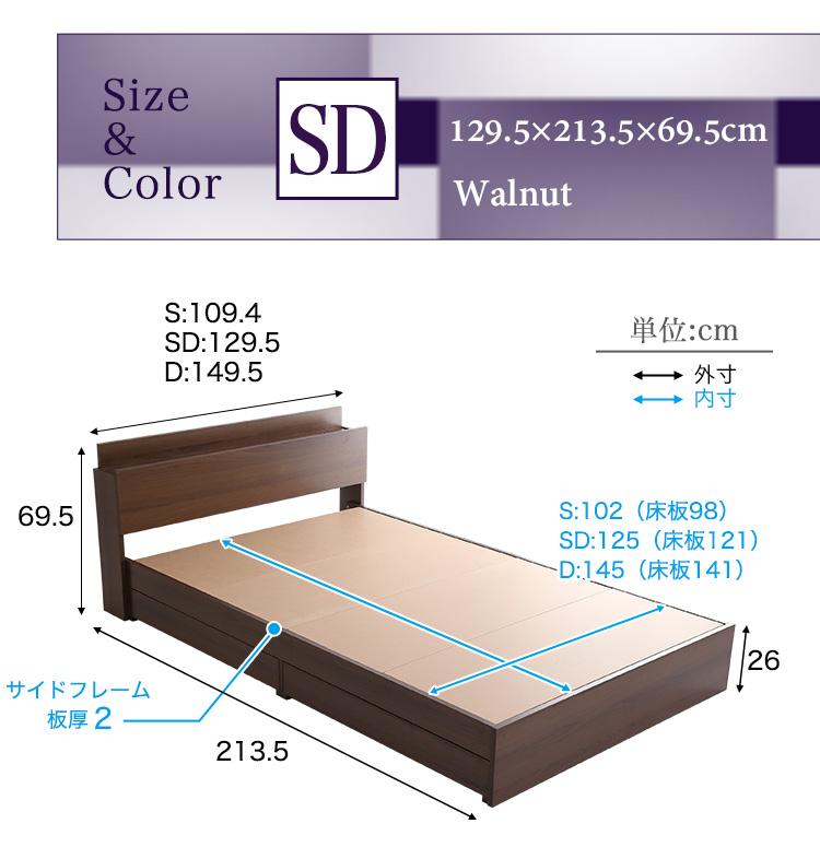 棚・コンセント付きチェストベッド SDサイズ【Reiz-レイズ-】