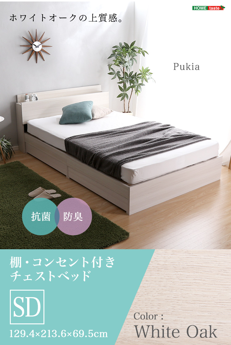 棚・コンセント付きチェストベッド SDサイズ 【Pukia -プキア-】