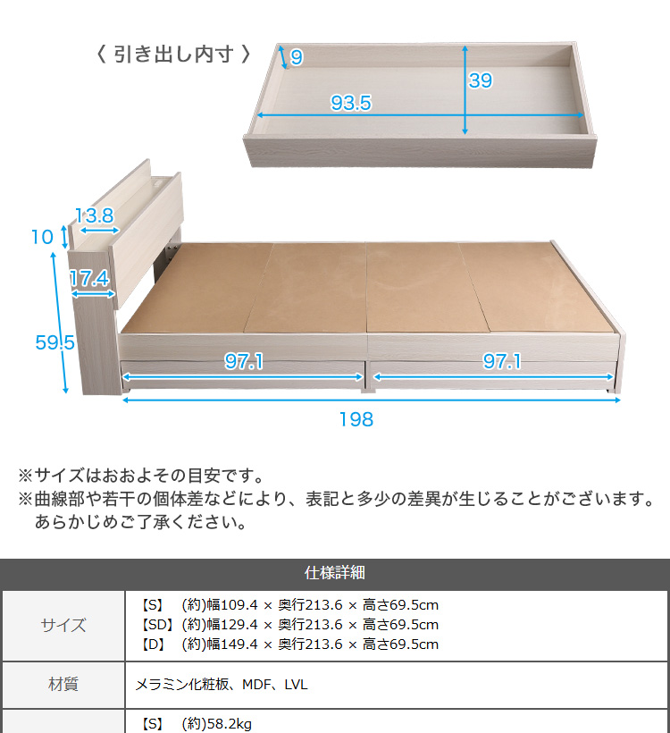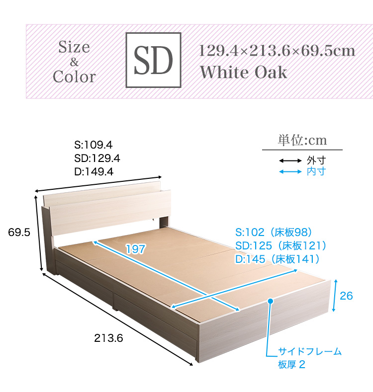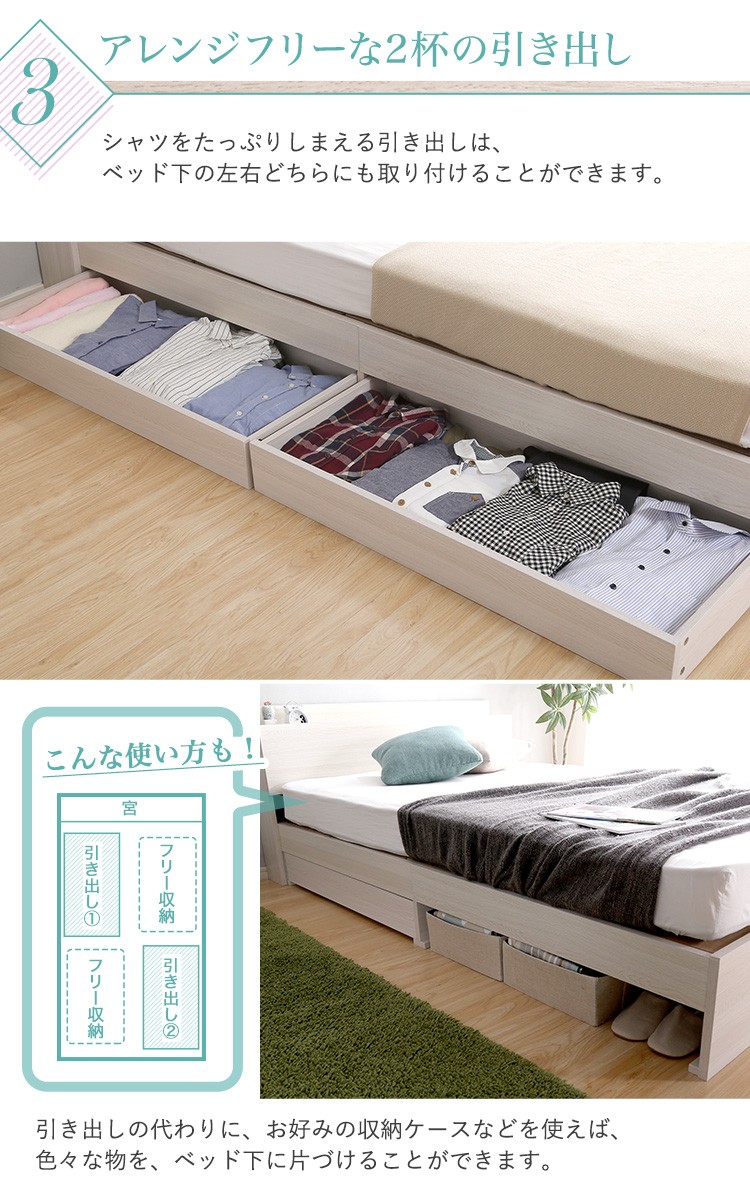 インテリア 寝具 収納 ベッド セミダブル