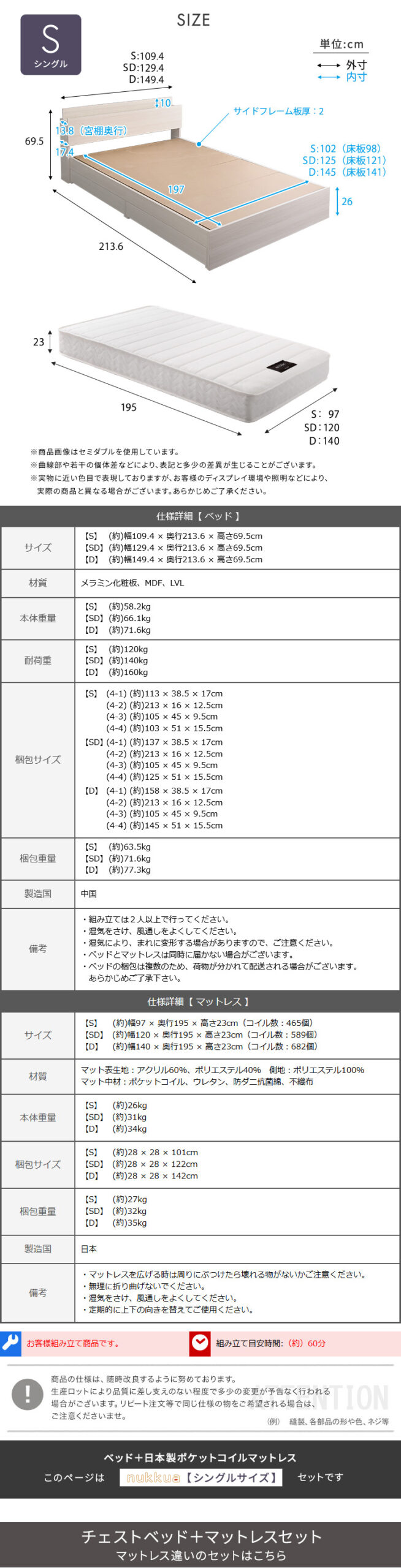 “棚・コンセント付きチェストベッド 日本製ポケットコイルマットレスセット(シングル)” の口コミを投稿します