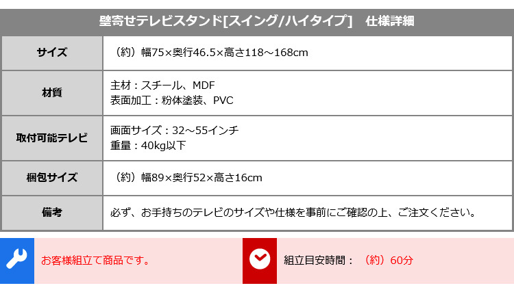 テレビスタンド ハイタイプ スイング サウンドバーセット