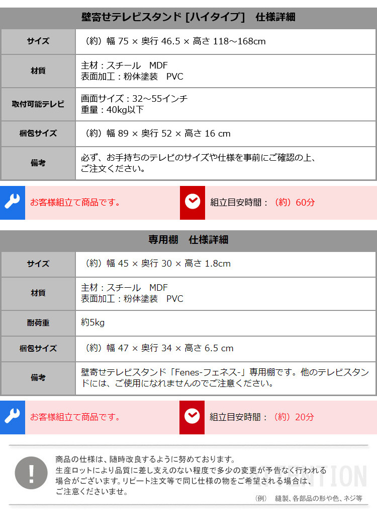テレビスタンド 壁寄せテレビ台 棚付き セット