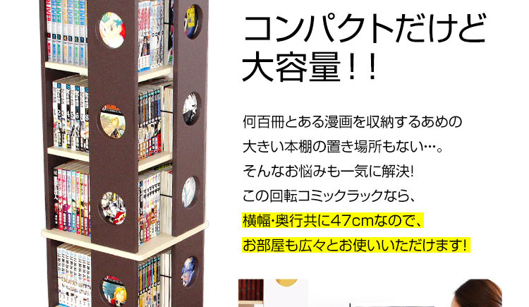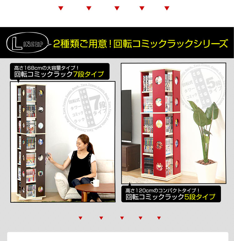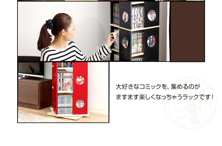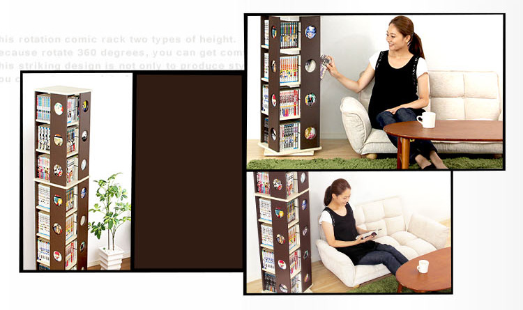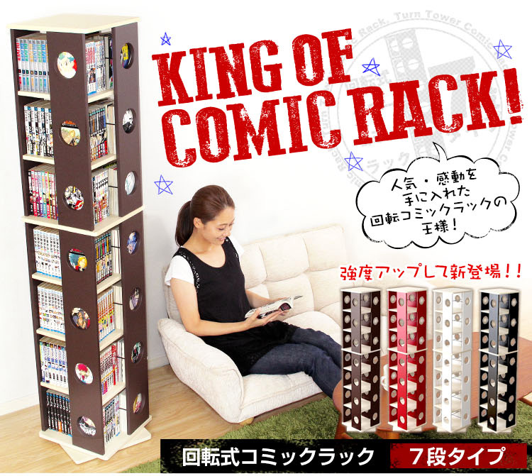 回転式本棚 7段コミック収納 本収納 回転コミックラック