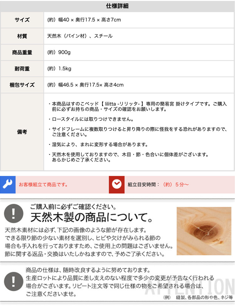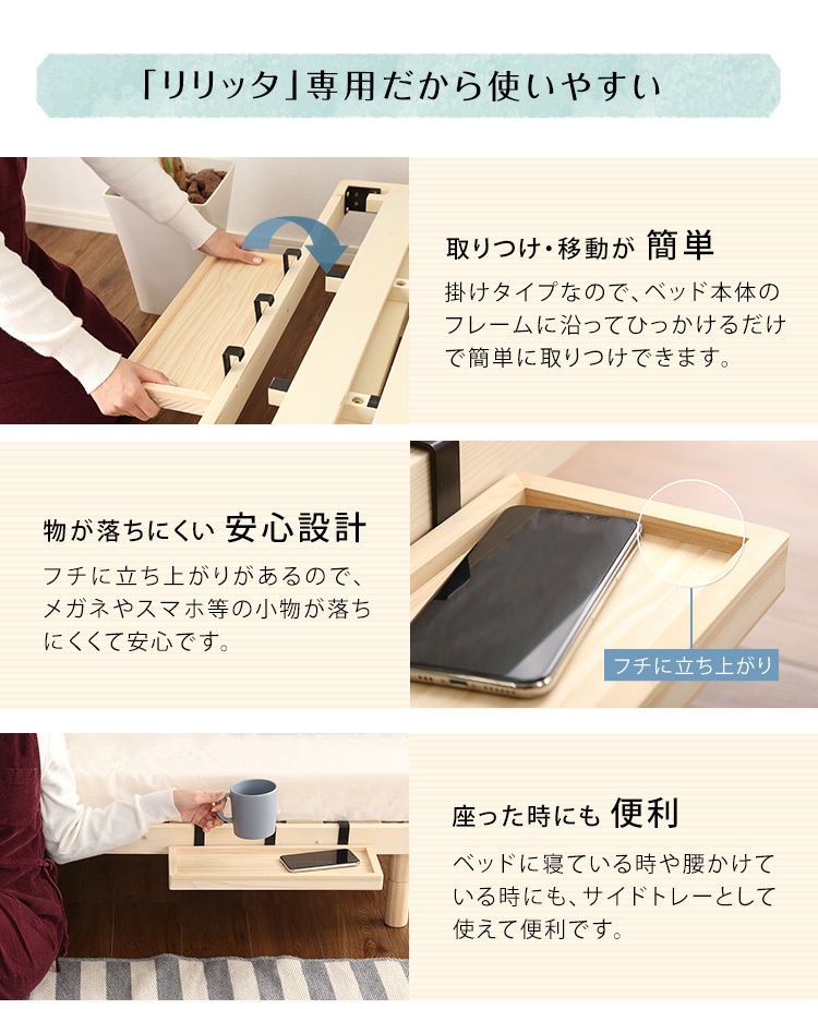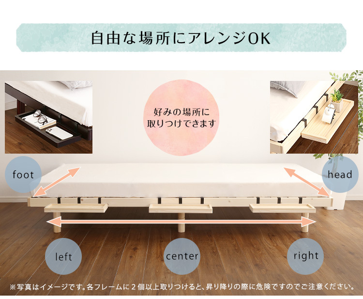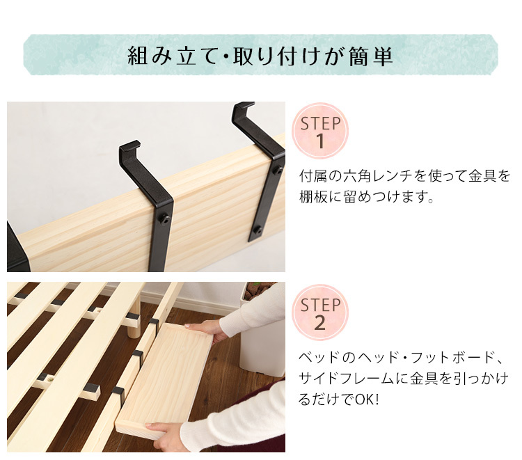 脚付きすのこベッド専用棚 天然木 取付簡単 コンパクト