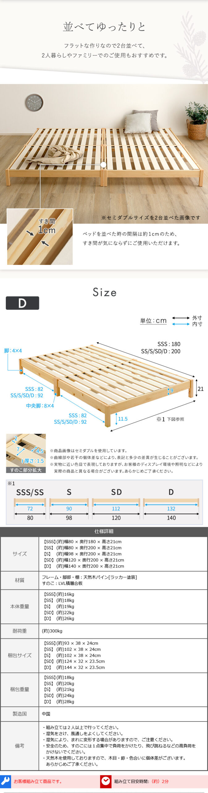 すのこベッド ベッド 工具不要 組み立て 簡単 頑丈