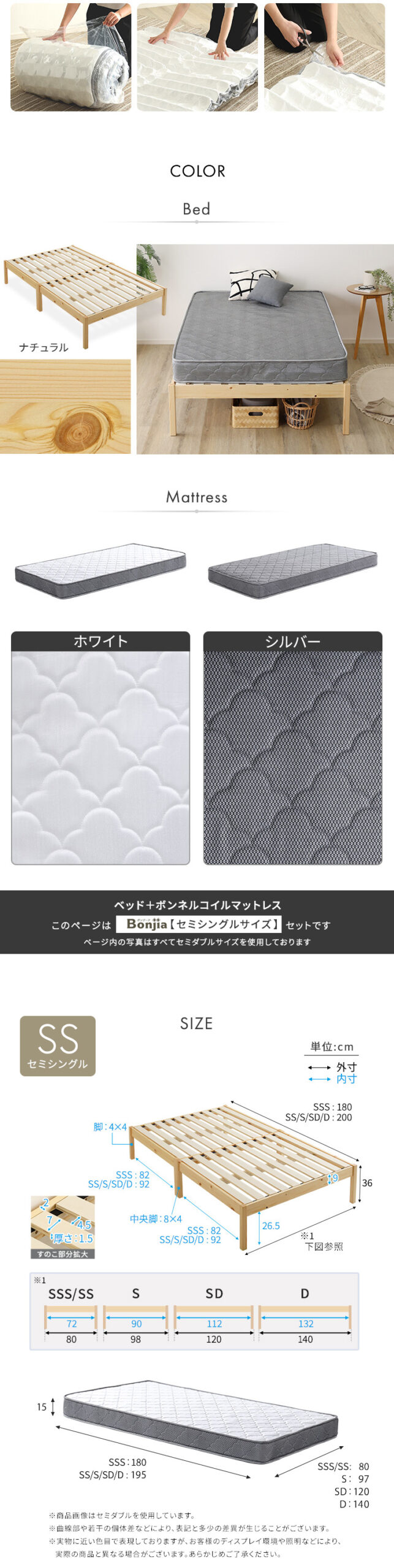 “2分で完成!組立簡単ベッド ハイタイプ ボンネルコイルマットレスセット(セミシングル)” の口コミを投稿します