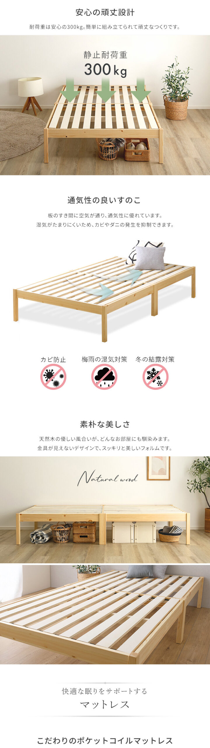 ベッド マットレス付 セット ポケットコイル