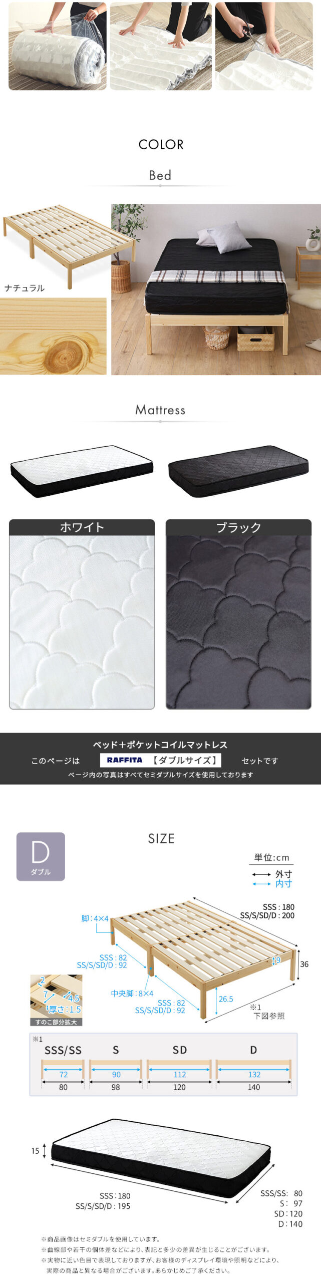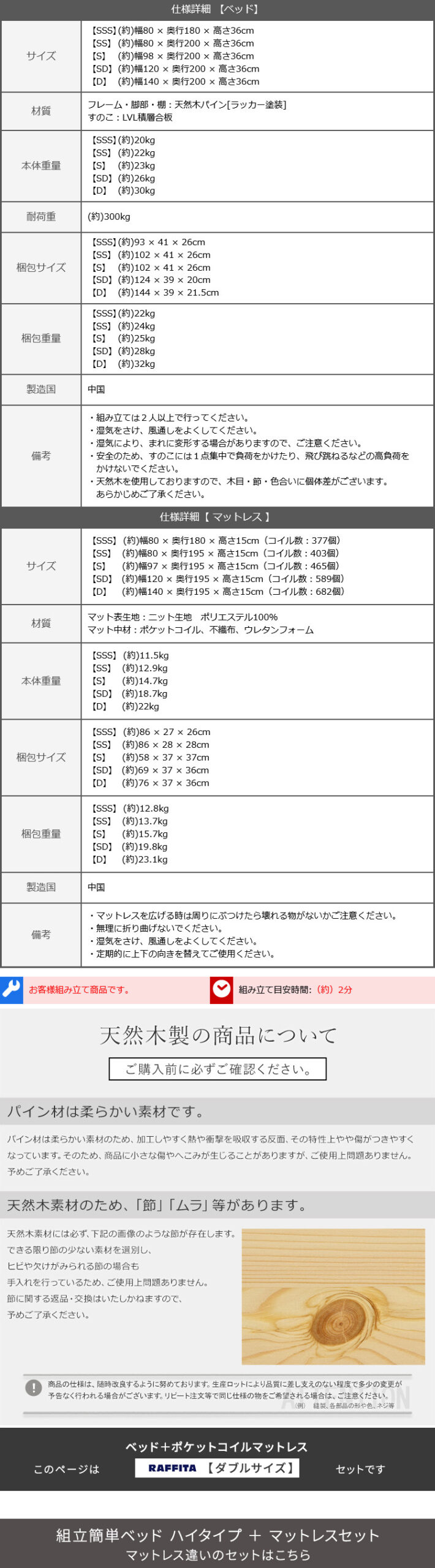 “2分で完成!組立簡単ベッド ハイタイプ ポケットコイルマットレスセット(ダブル)” の口コミを投稿します