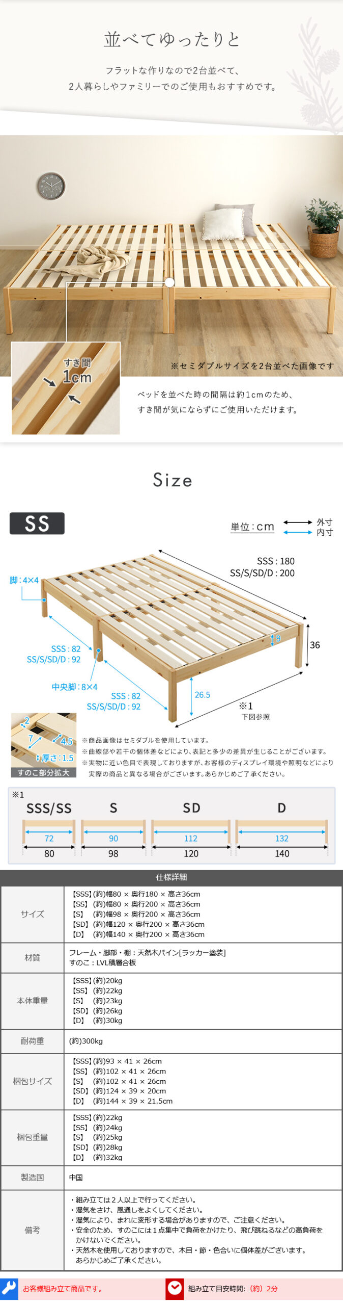 すのこベッド ベッド 工具不要 組み立て 簡単 頑丈
