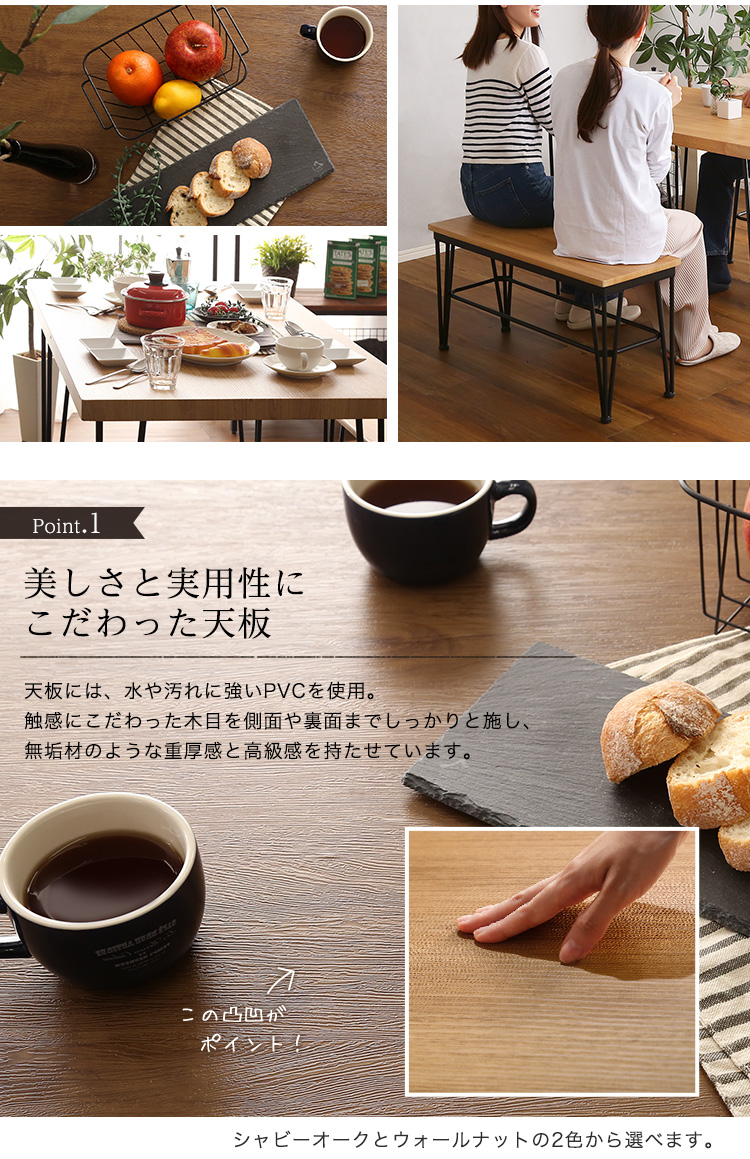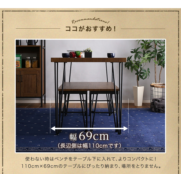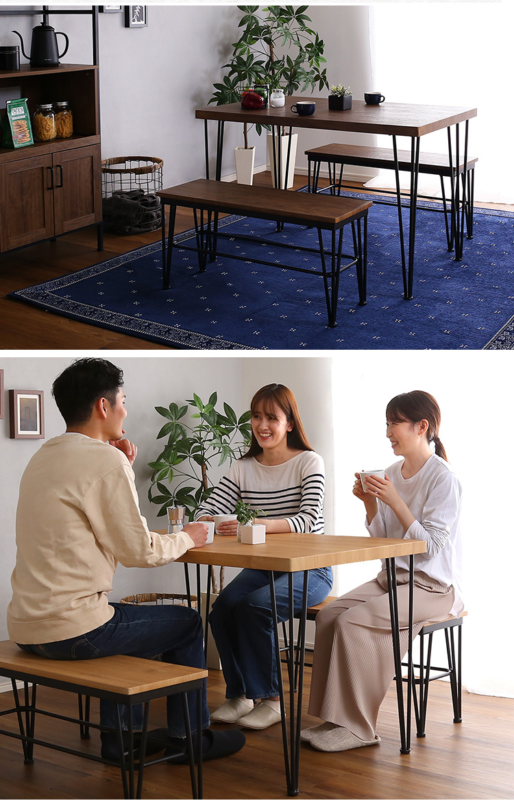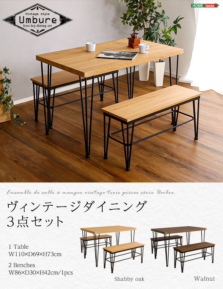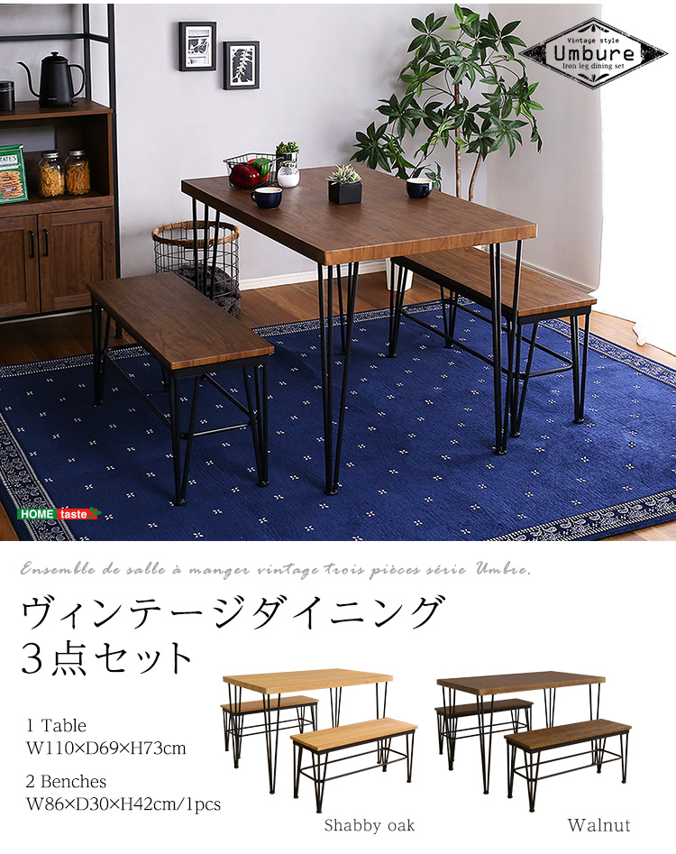 ヴィンテージ ダイニング おしゃれ 3点 ベンチ 木目