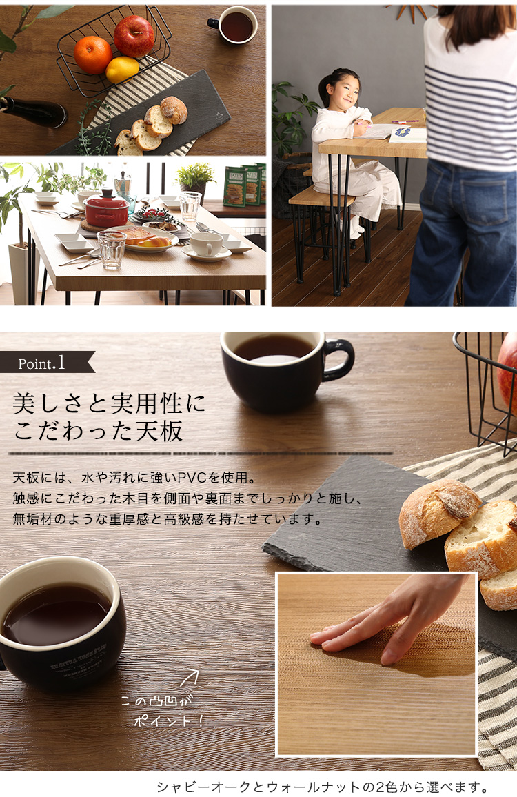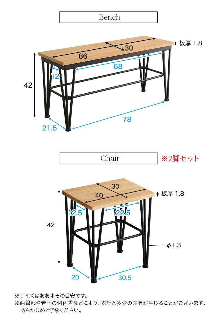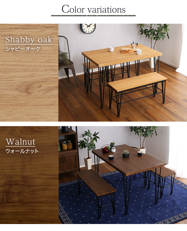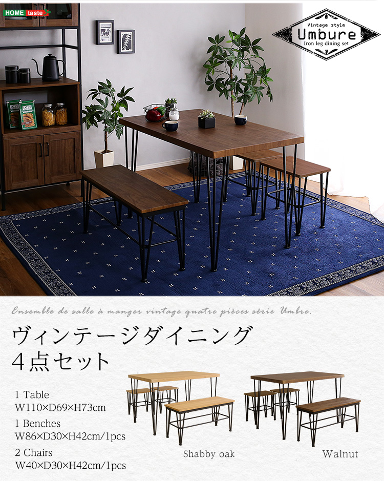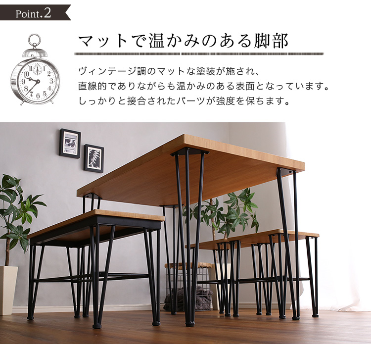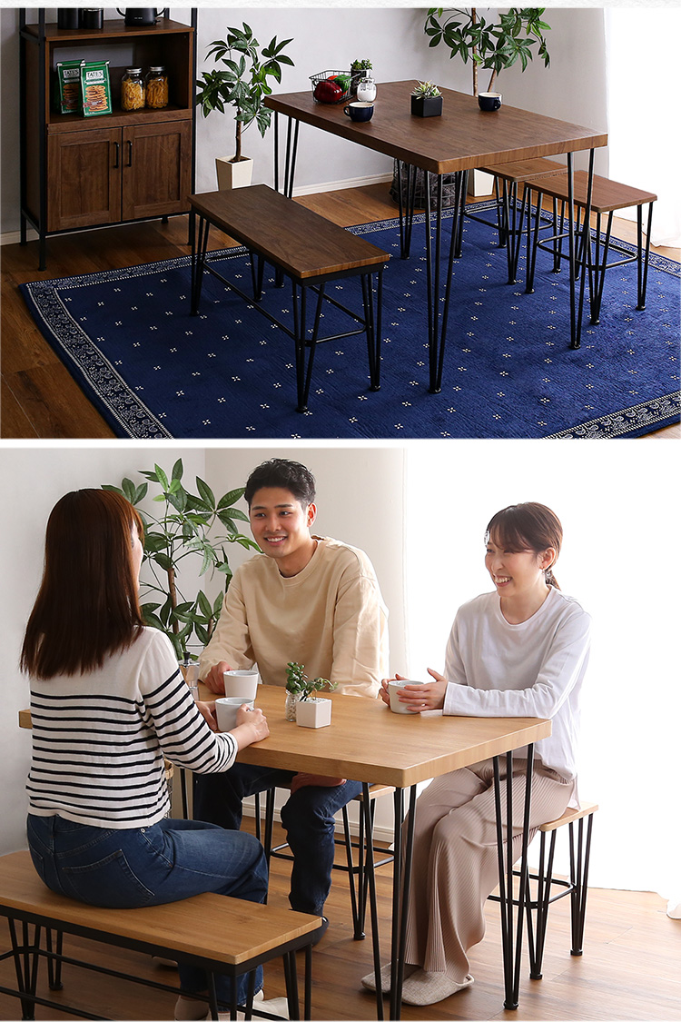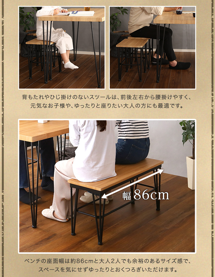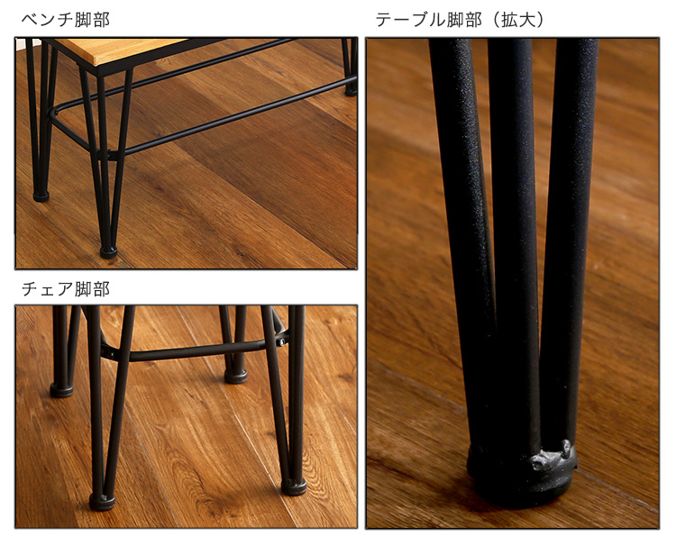 ヴィンテージ ダイニング おしゃれ 3点 ベンチ チェア 木目