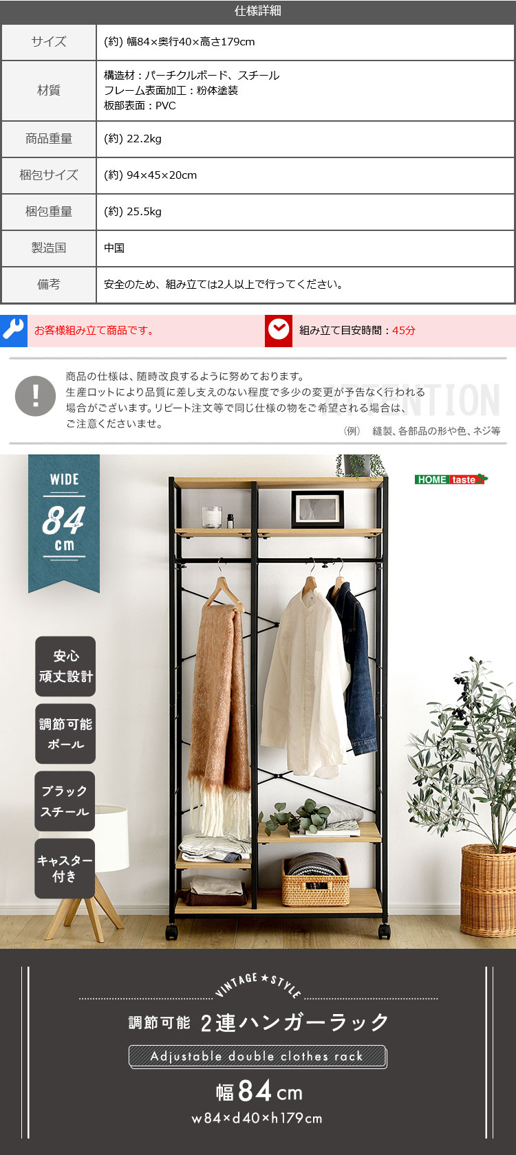 “ヴィンテージ調 調節可能2連ハンガーラック” の口コミを投稿します