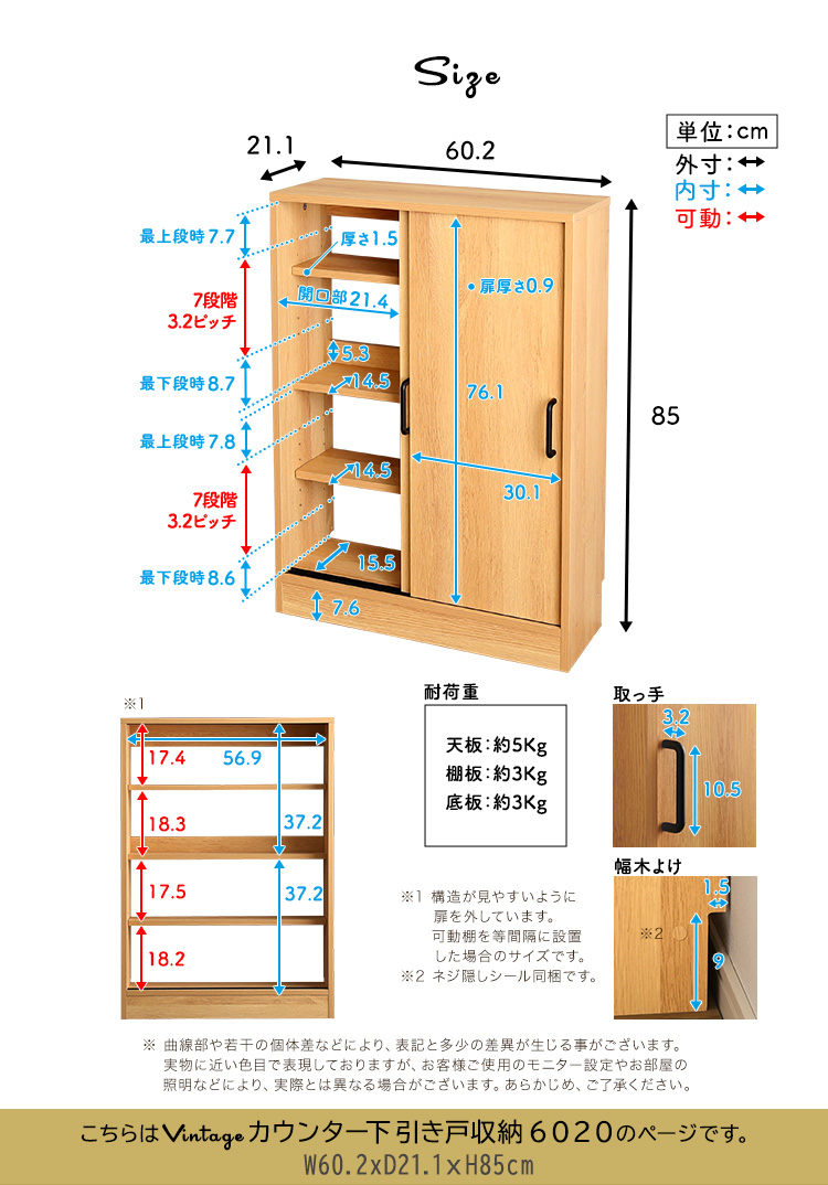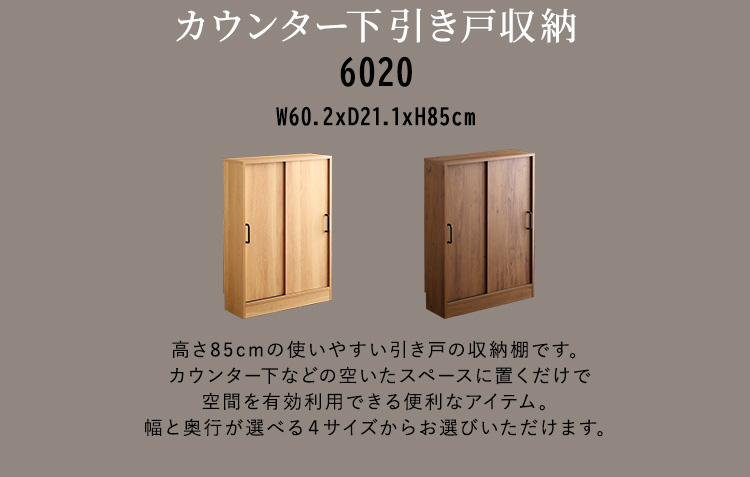 カウンター下収納 引き戸 幅60cm 奥行20cm 収納