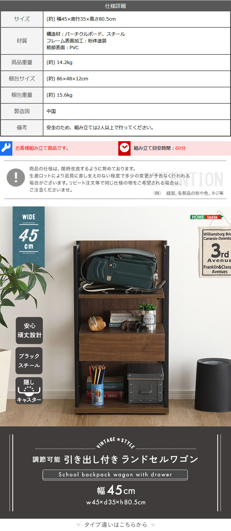 【素材】構造材:パーチクルボード、スチール
