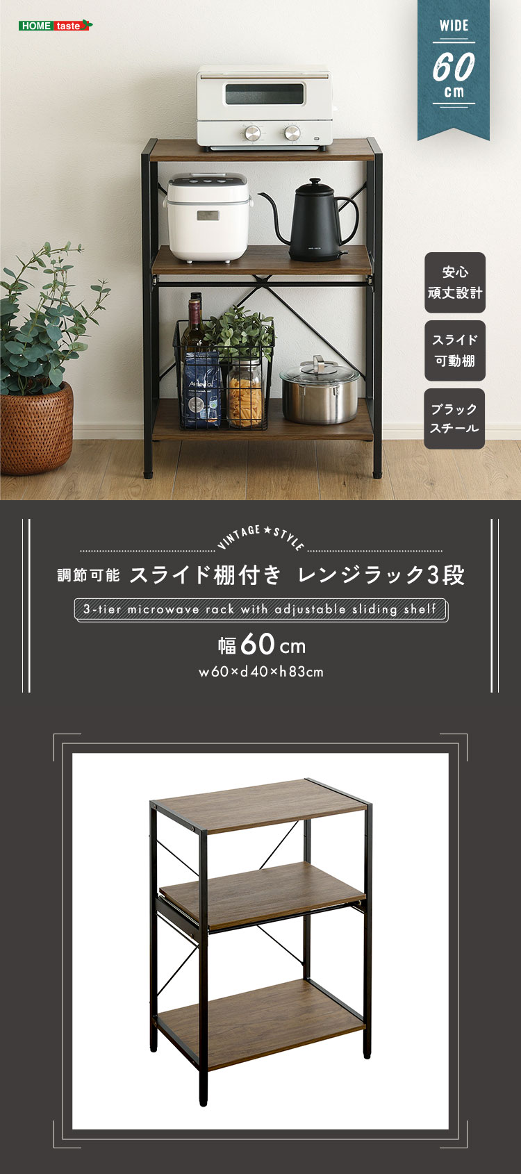 ヴィンテージ調 調節可能スライド棚付きレンジラック3段