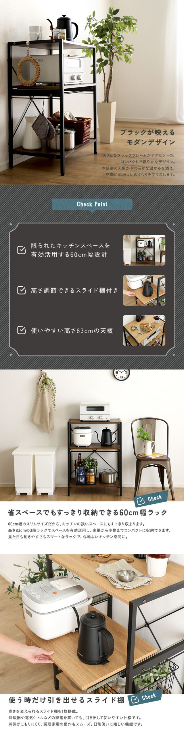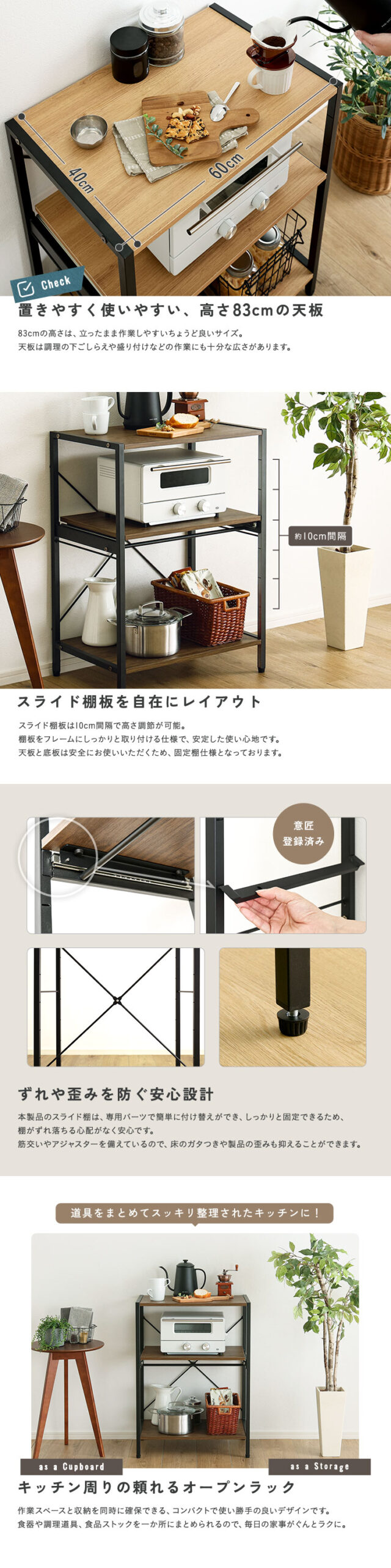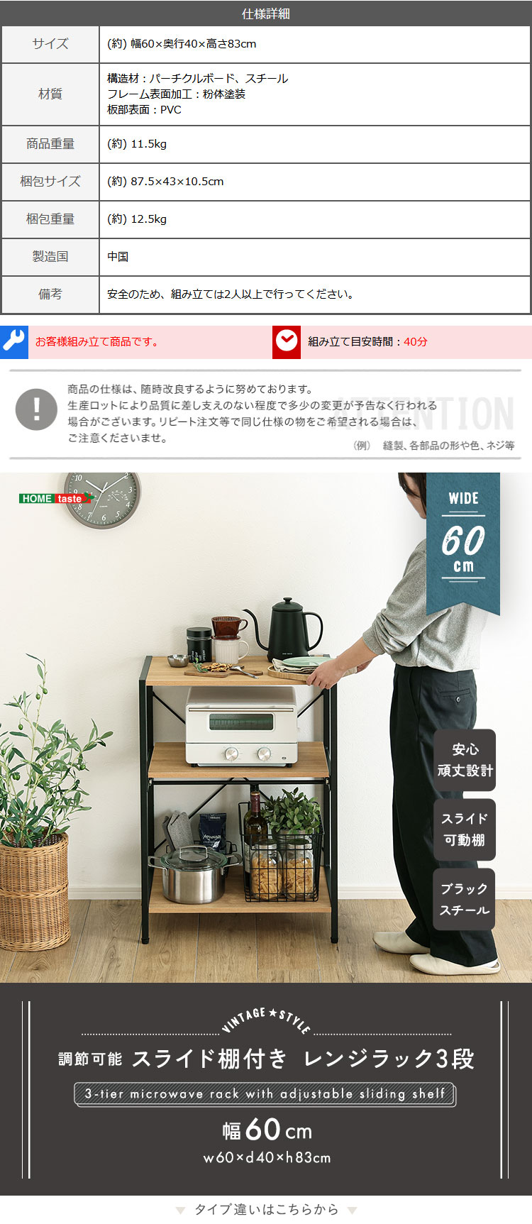 “ヴィンテージ調 調節可能スライド棚付きレンジラック3段” の口コミを投稿します