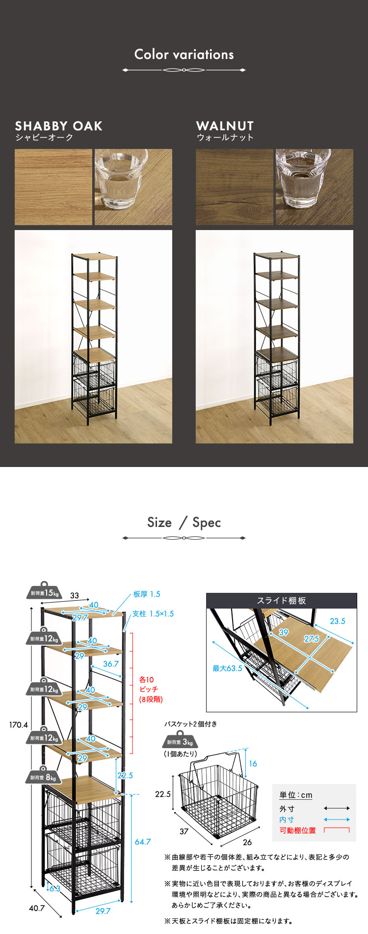 スライド棚:(約)8kg
