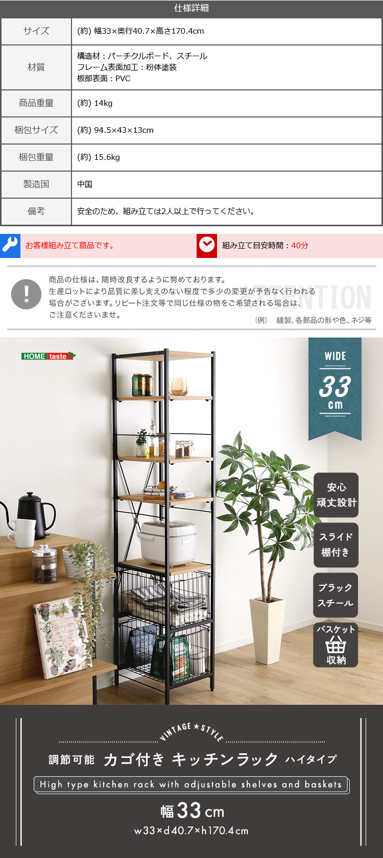(約)幅33×奥行40.7×高さ170.4cm