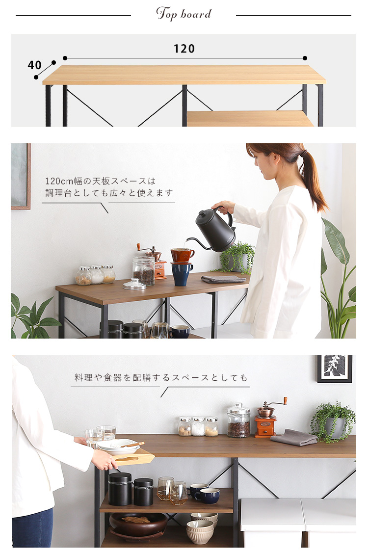 ヴィンテージごみ箱上キッチンカウンター120cm幅