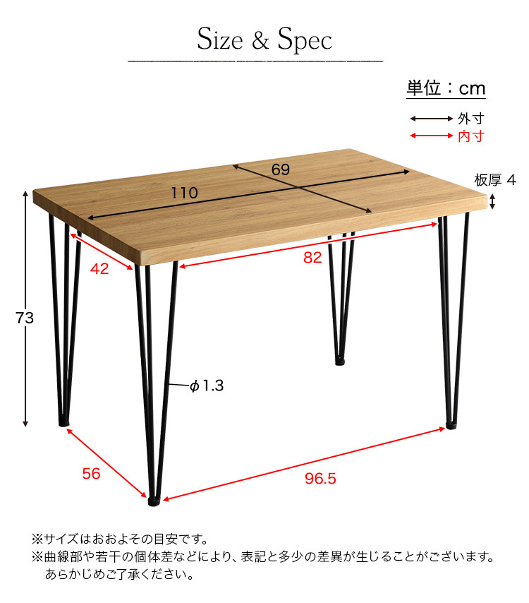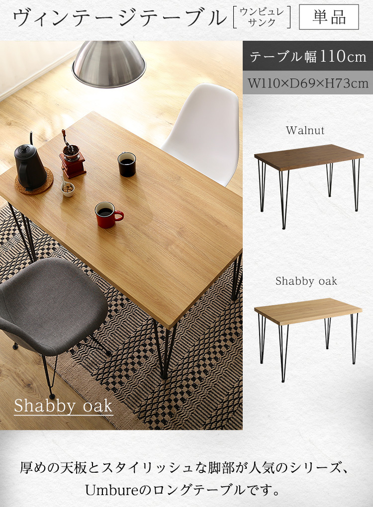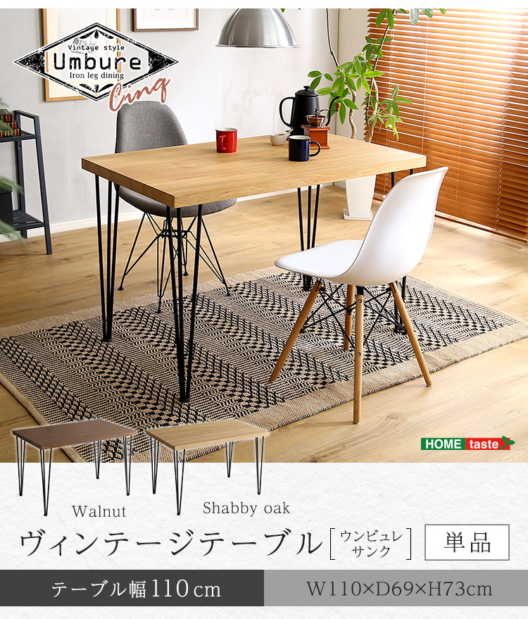 ヴィンテージテーブル スチール脚コンパクト 110cm幅