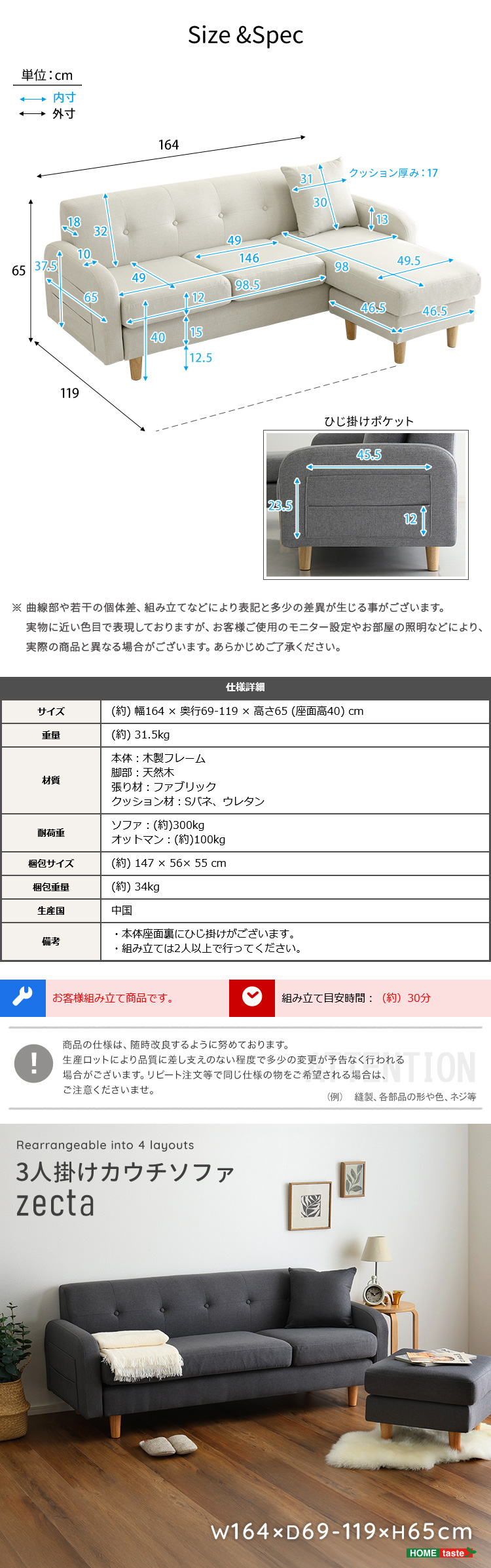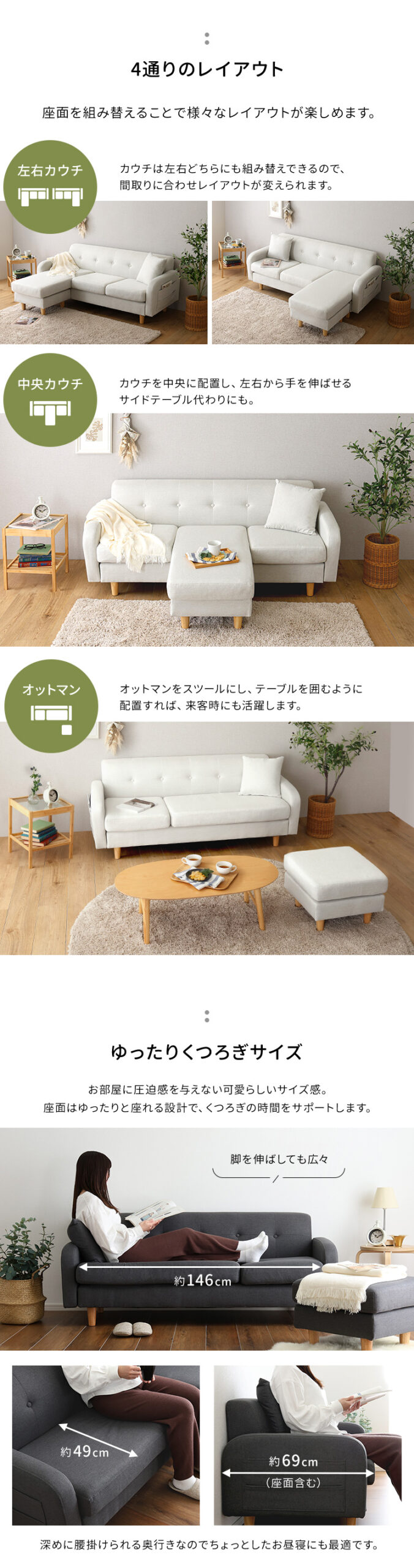 ソファー 3人掛け ソファ l字 カウチ コーナー 3p